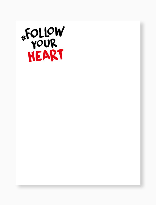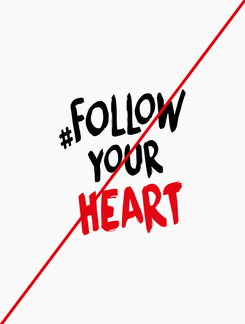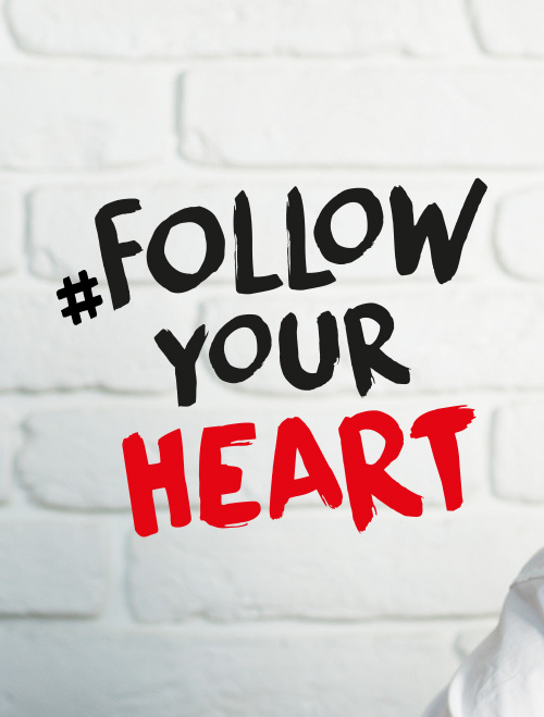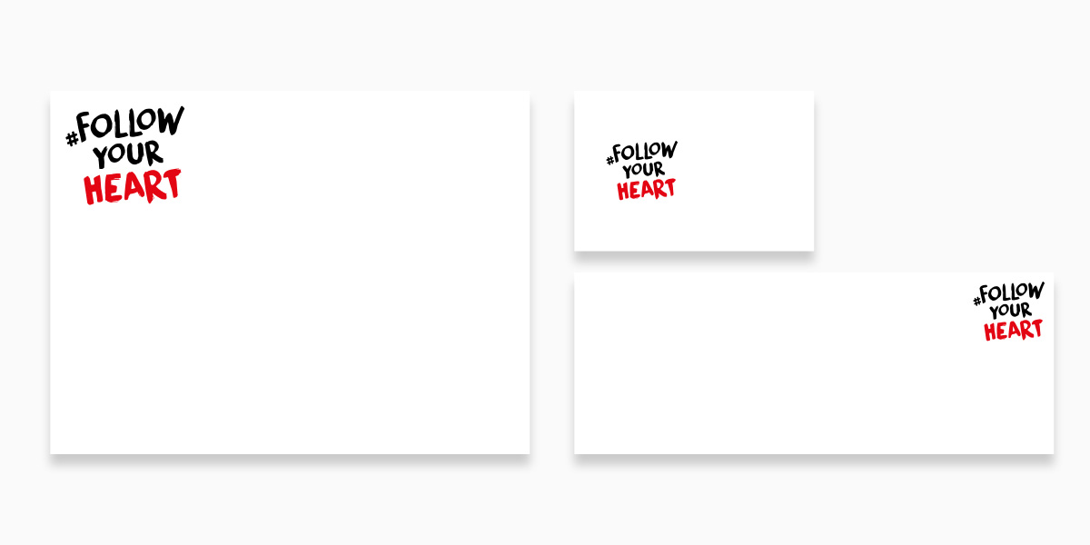 Unser Corporate Design lässt Ihnen viele Freiheiten: Wir haben ganz bewusst darauf verzichtet, jeden Spezialfall exakt zu definieren. Stattdessen entscheiden Sie selbst, welche Lösung für die Kampagne #followyourheart die Beste ist. Sollten Sie Fragen zur Anwendung haben, helfen wir Ihnen natürlich gerne weiter.