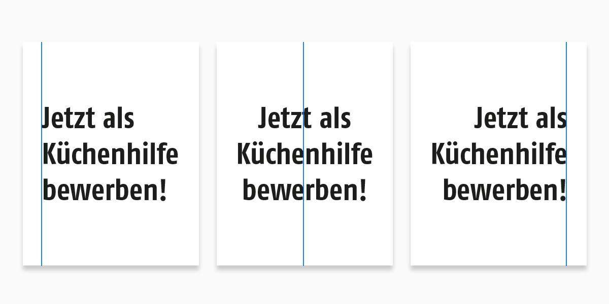 Je nach Medium können Sie zwischen linksbündigem, zentriertem oder rechtsbündigem Satz wählen.